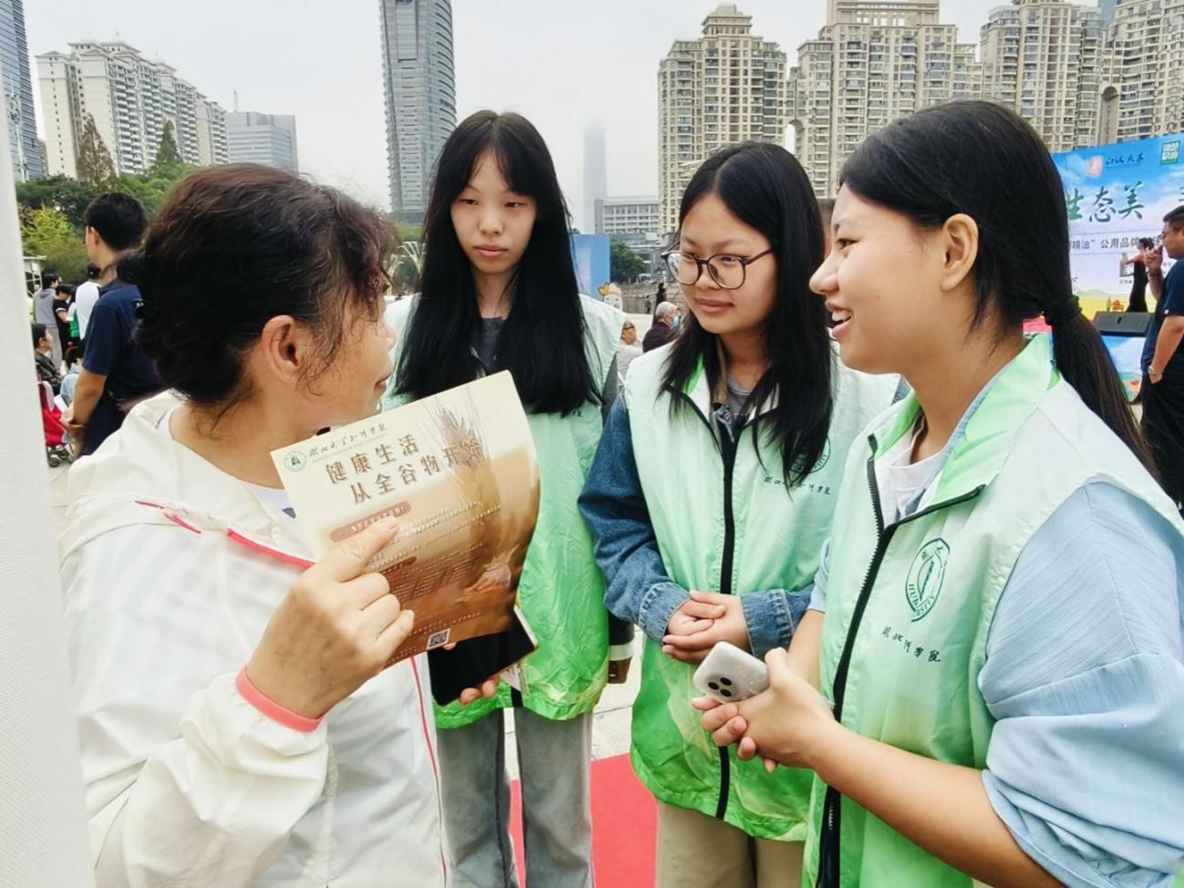 2025年10月12日,武汉市江汉区西北湖广场热闹非凡,在“荆楚粮油”公用品牌创建十周年庆典中,湖北大学知行学院粮工学院师生志愿者携全谷物标本与科普展板,开启下半年健康科普新征程。此次活动是上半年科普案例入选国家级榜单后,将全谷物知识从社区推向城市公共空间的又一实践。